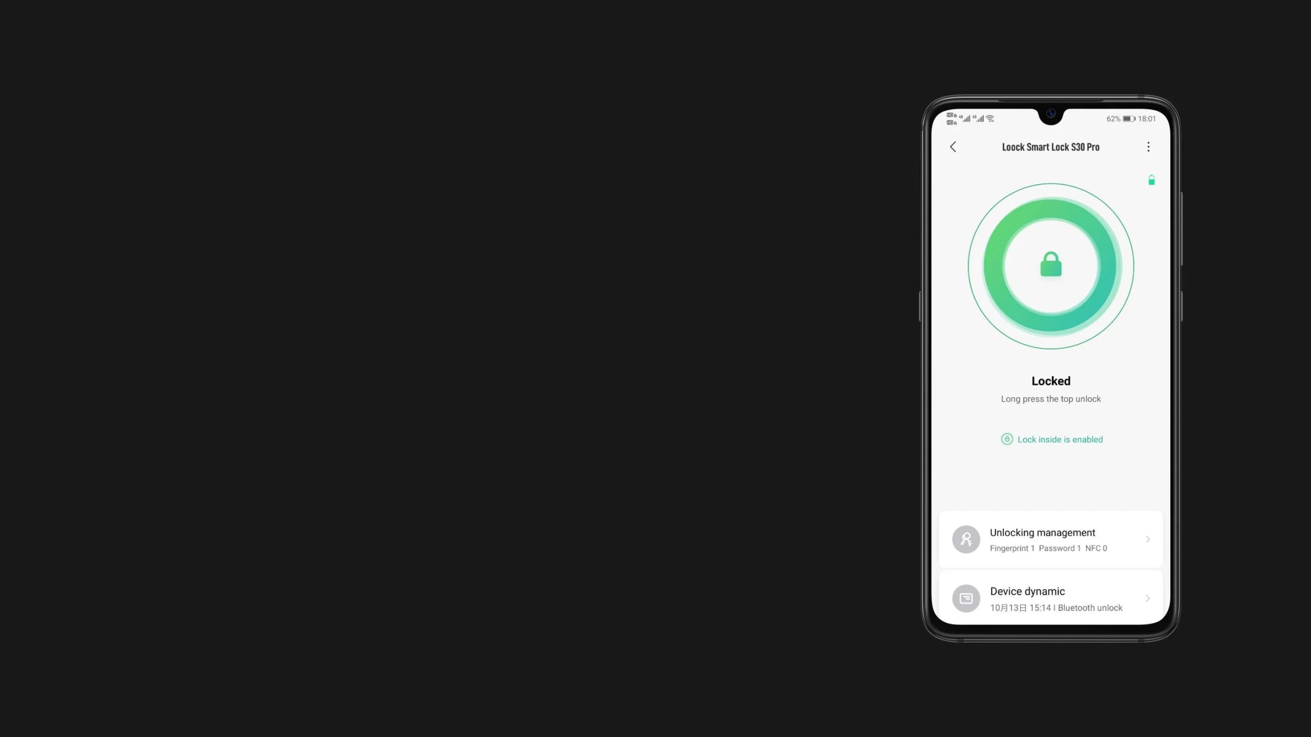 Phương thức mở khóa:Vân tay / Mã PIN / Thẻ NFC / Bluetooth / Chìa khóa cơ